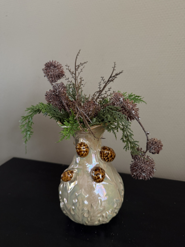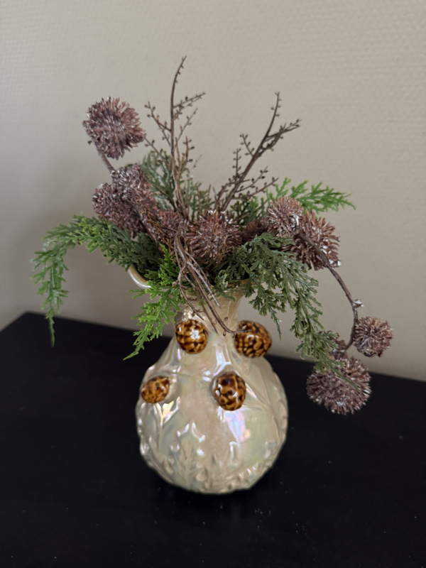 Maat is 12 d x 20 h ( excl. bloemen , groen takken)
